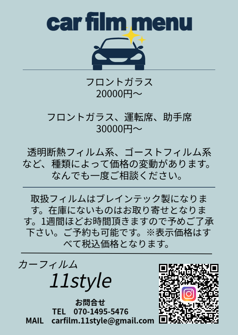 静岡でお安くカーフィルム貼るなら、11style(イレブンスタイル)へ☆☆☆